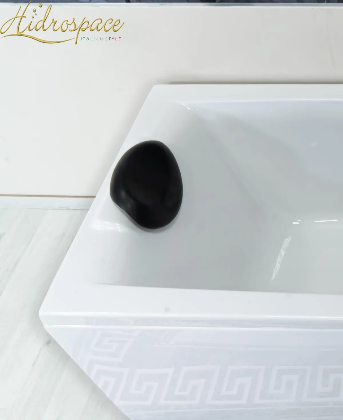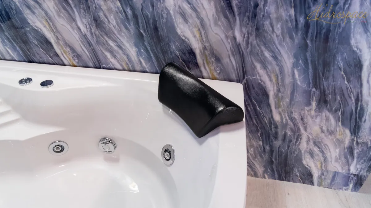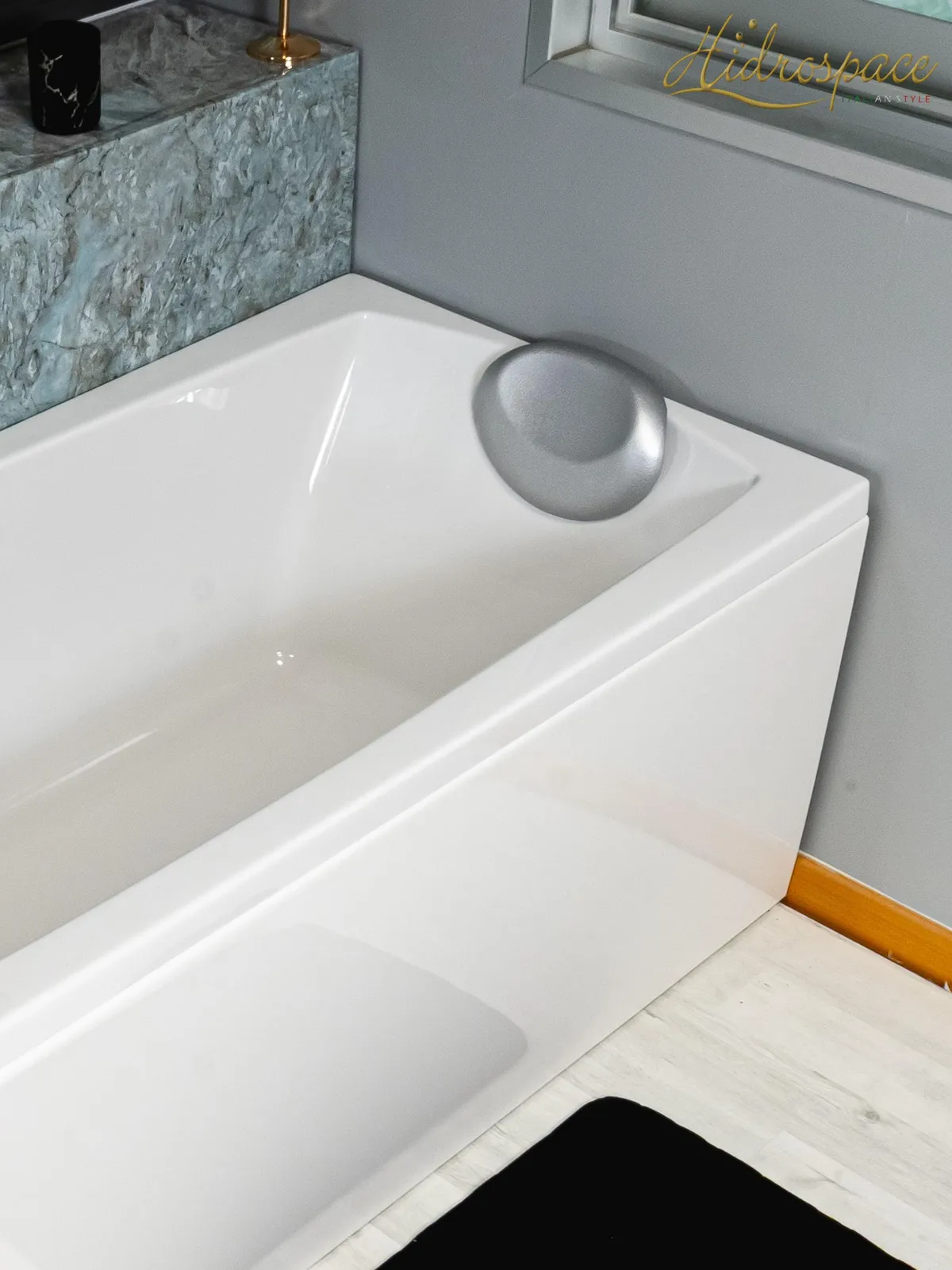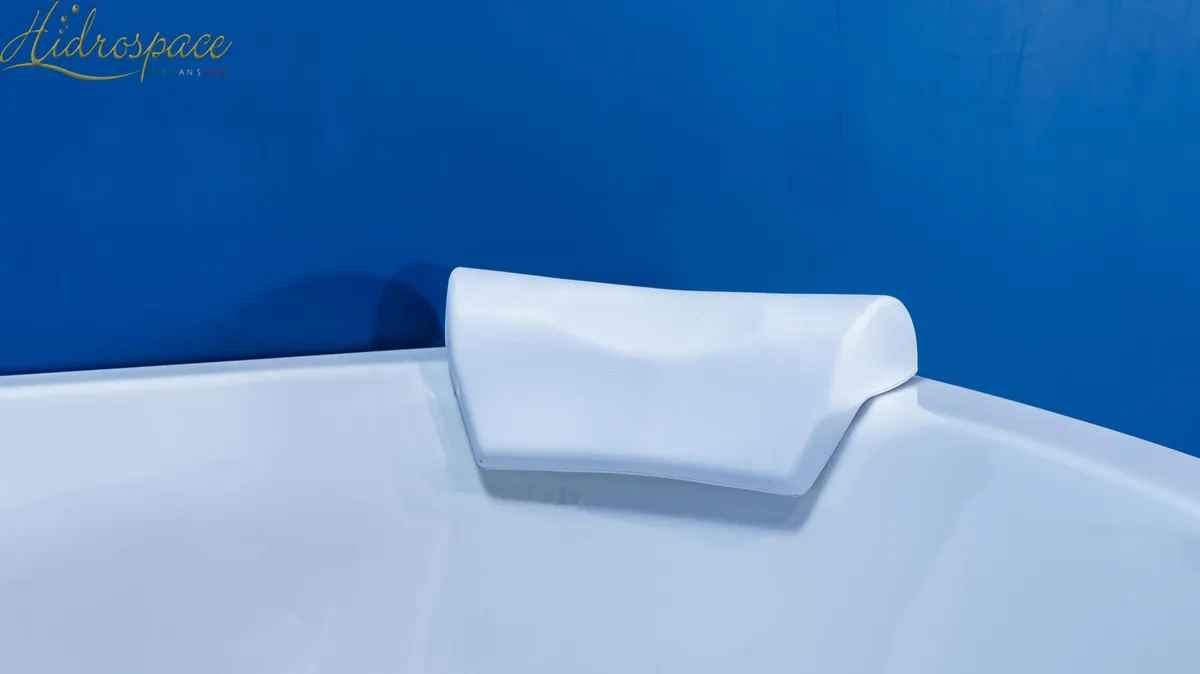 Luxury headrest cushion with suction cups, available in trapezoid and oval models for wide or narrow tub edges.