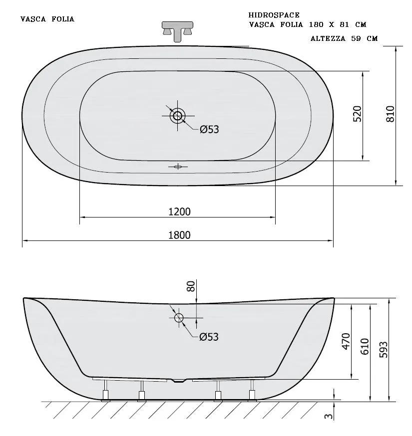 Baignoire ovale autoportante avec hydromassage Folia 180x81 cm, élégance et détente.