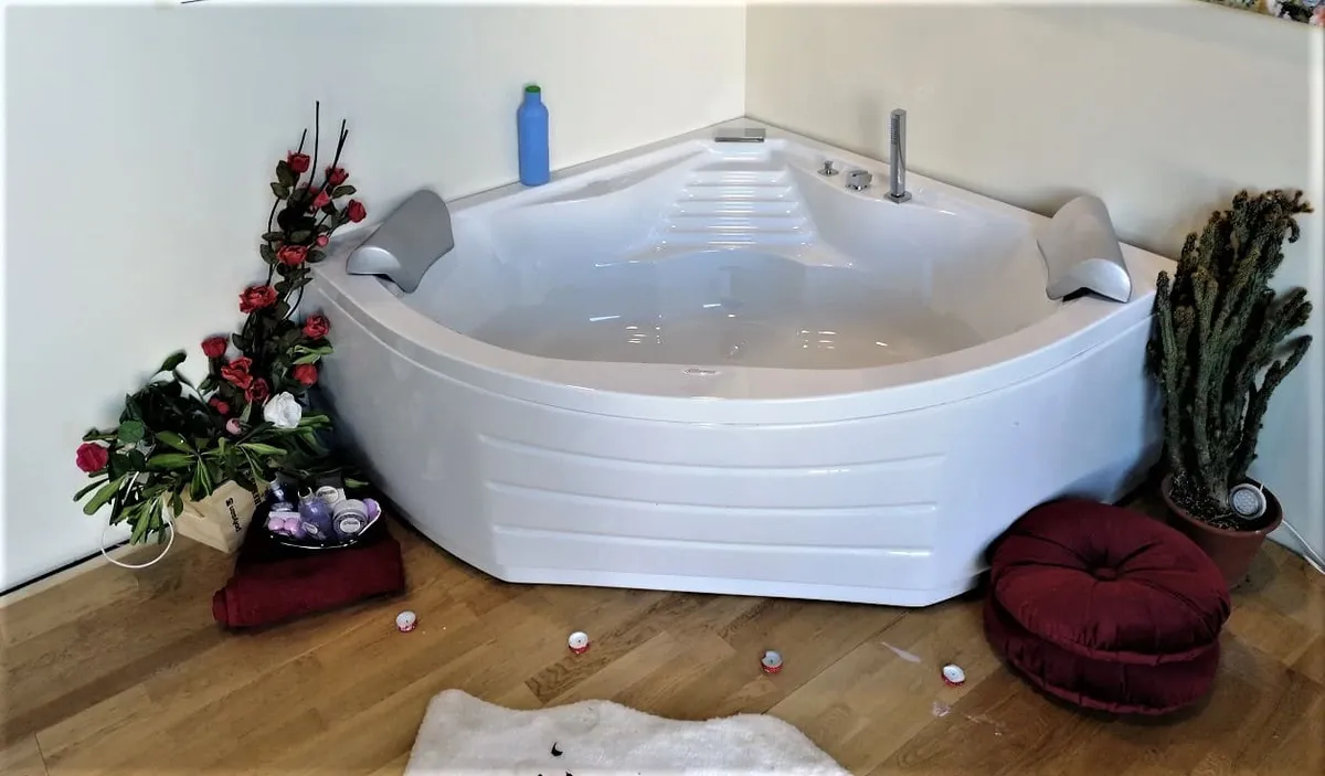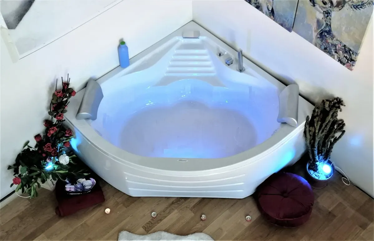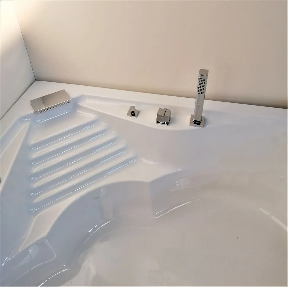 NIAGARA 140x140 : baignoire d'angle élégante avec cascade, design raffiné et fonctionnalité inégalée. Sublime toute salle de bain.