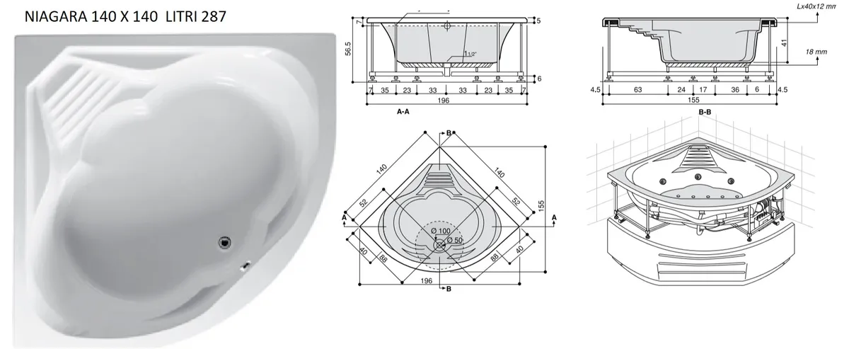 NIAGARA 140x140 BAIGNOIRE D'ANGLE