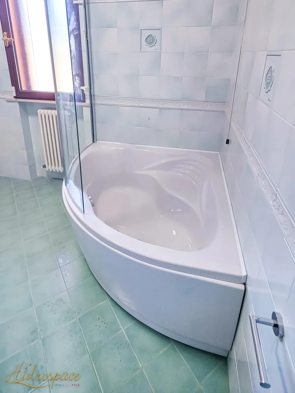 Victoria 130x130 hoekbad, elegant ontwerp en superieur comfort voor een luxe badkamer.